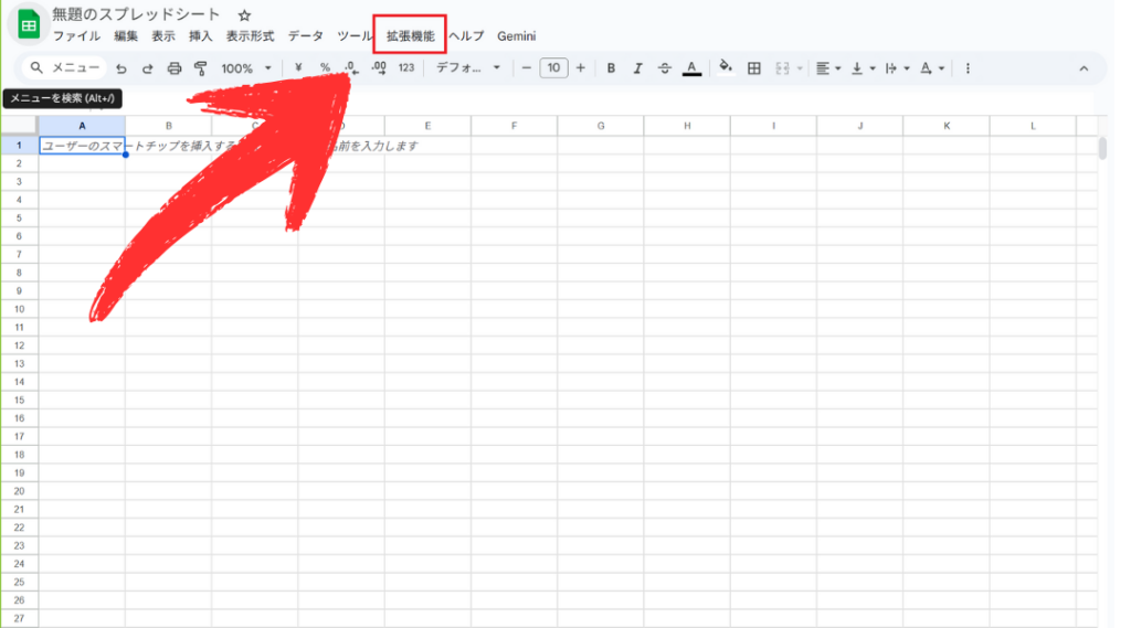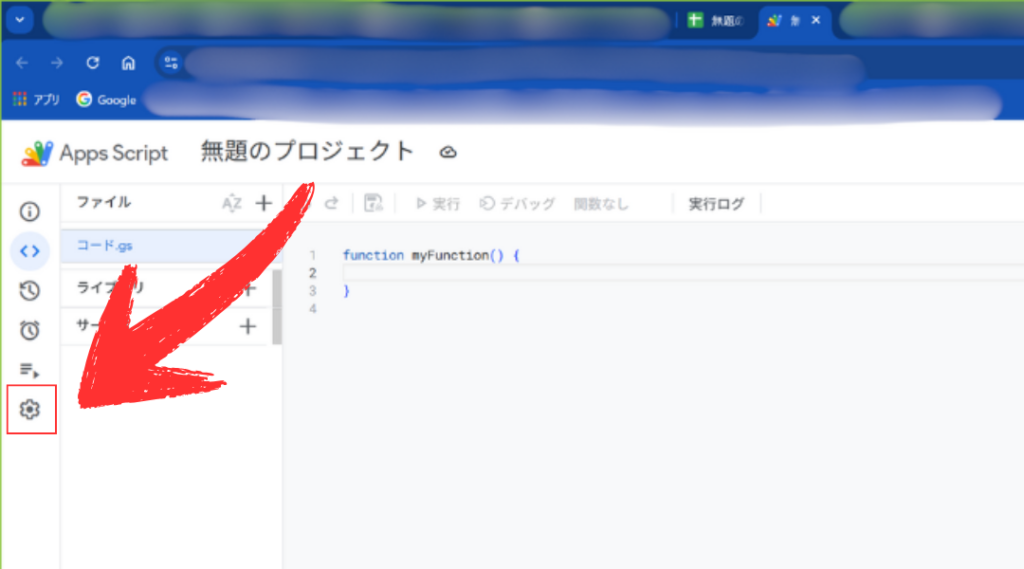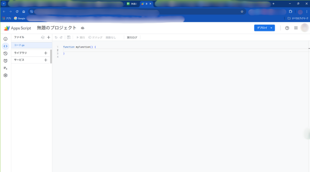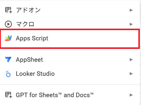 スプレッドシートからエディタを開き、後述するコードを貼り付ける。