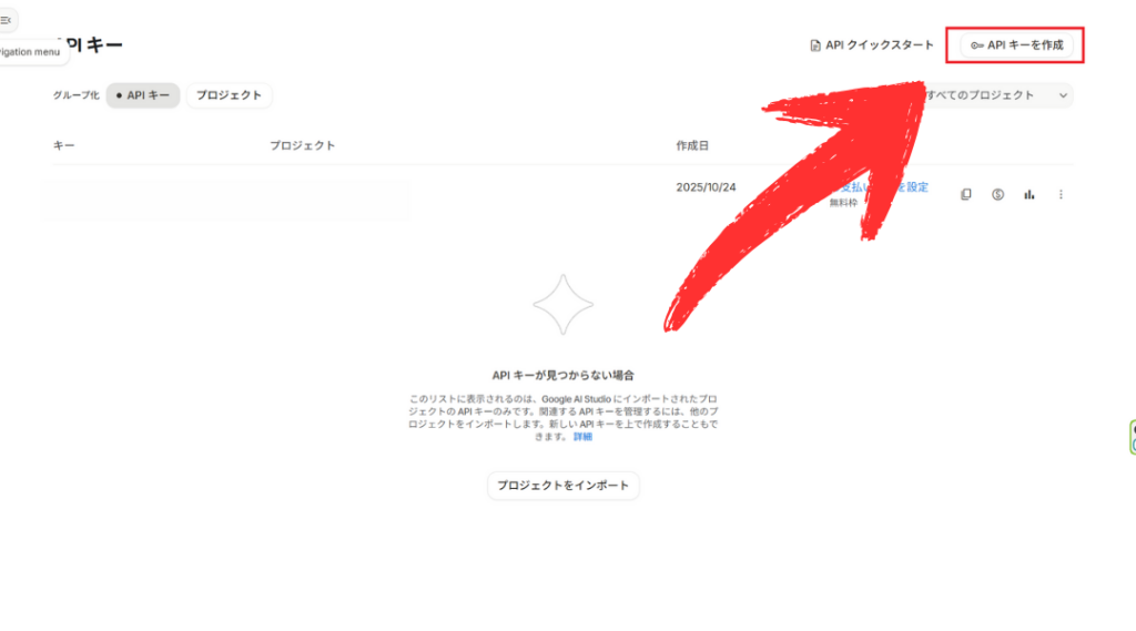 また、Google AI Studio側でプロジェクトを削除していないかも確認が必要です。