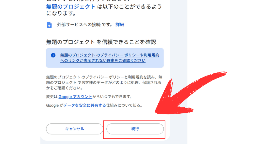 1. 「権限を確認」をクリック