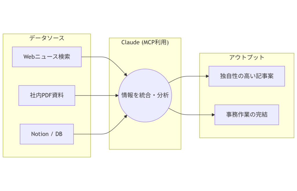 複数のMCPサーバーを組み合わせることで、記事作成の全工程を半自動化する驚きのワークフローが作れます。