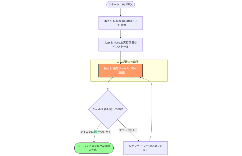 ただ、JSONファイルを編集したりNode.jsをインストールしたりと、少し「エンジニアっぽい作業」が必要で、最初の一歩が重く感じてしまいますよね…